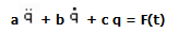 где: q − обобщенная координата; a − инерционный коэффициент; b − обобщенный коэффициент трения; с − обобщенный коэффициент жесткости системы; F(t) − вынуждающая внешняя сила. За обобщенную координату (q) примем линейное перемещение гайки. Для нахождения обобщенной массы системы найдем кинетическую энергию системы: